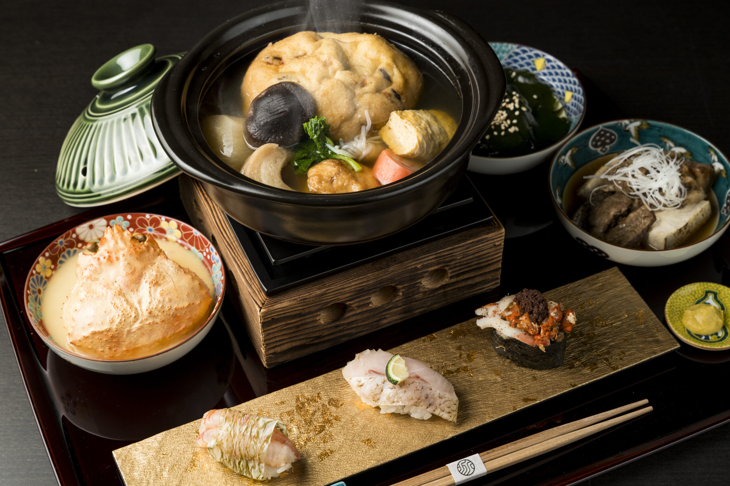 特選金沢おでん御膳~名物げんこつがんもどきと蟹茶碗蒸し・極みの3貫鮨~ ※要予約