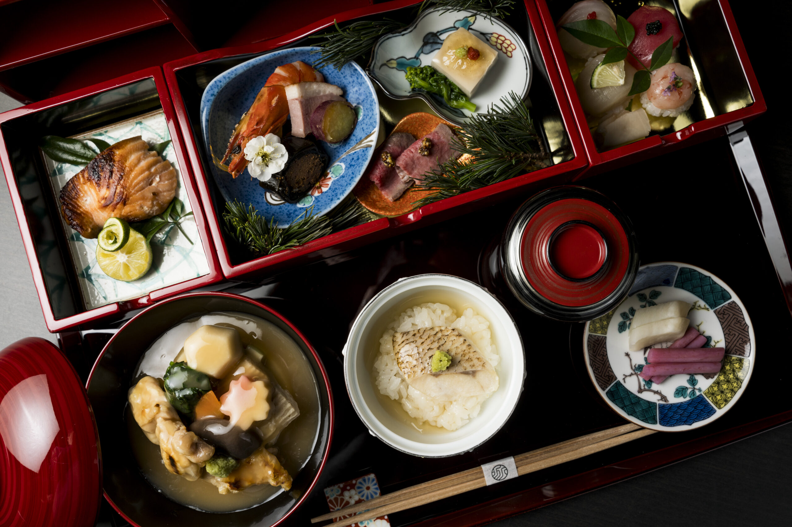 のど黒の蒸し寿司や能登牛のローストビーフがお楽しみいただける“特選金沢の宝石箱”に、体験黄金ソフトクリームとドリンク付きのお得なランチメニューをご用意いたしました。朱塗りの美しい箱は、かつての御殿様の園遊弁当をイメージしました。加賀てまりをイメージした可愛らしいて手まり寿司や、上質な脂身がのった高級魚・のど黒の蒸し寿司は最上級の美味しさです。