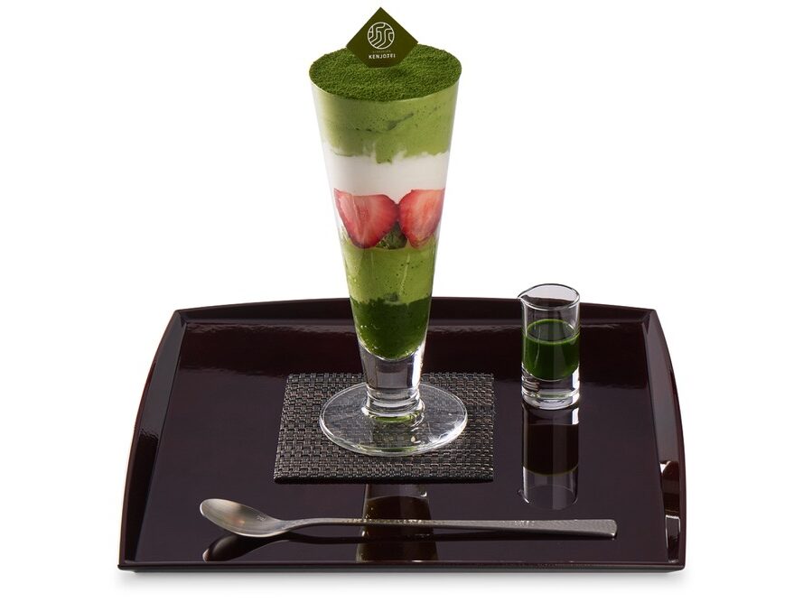 Made with plenty of matcha green tea, and topped with a finish meant to evoke Kenrokuen Garden’s delicate moss. Enjoy the harmony of Kaga Bocha roasted tea kanten jelly, the fruit of the day, premium handmade sweet bean paste, chewy shiratama dumplings, rich matcha green tea ice cream, sherbet, and espuma foam.